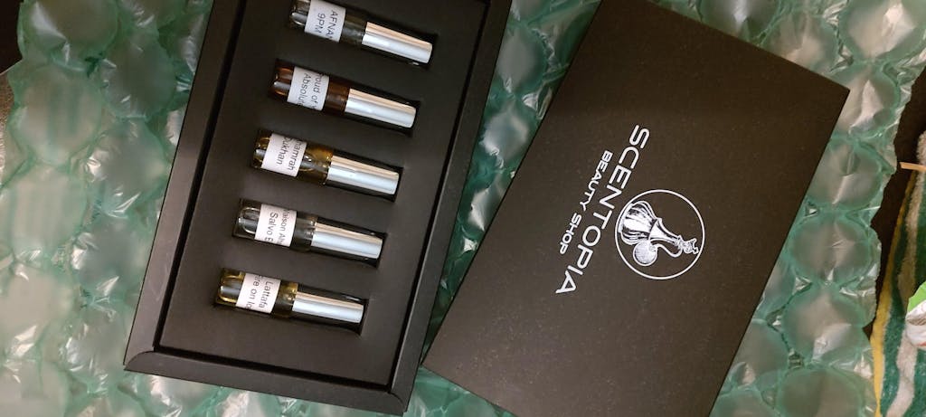 Scentopia 's Discovery Box gives you the opportunity to test selected original Arabic perfumes before investing in a full-size bottle.